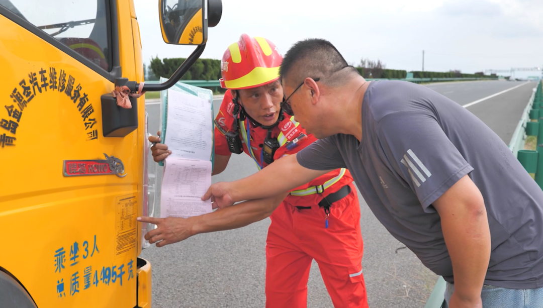 (图为清障救援作业人员向司乘讲解收费标准)